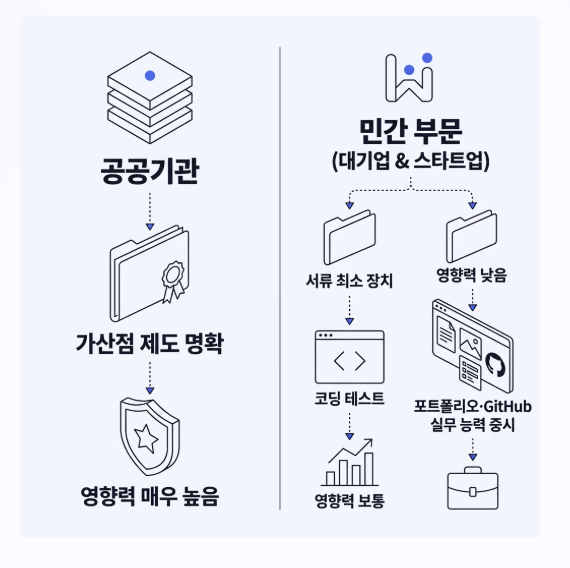 | 스타트업 | ★☆☆☆☆ | 자격증보다 실질적인 포트폴리오와 깃허브(GitHub) 중시 |
