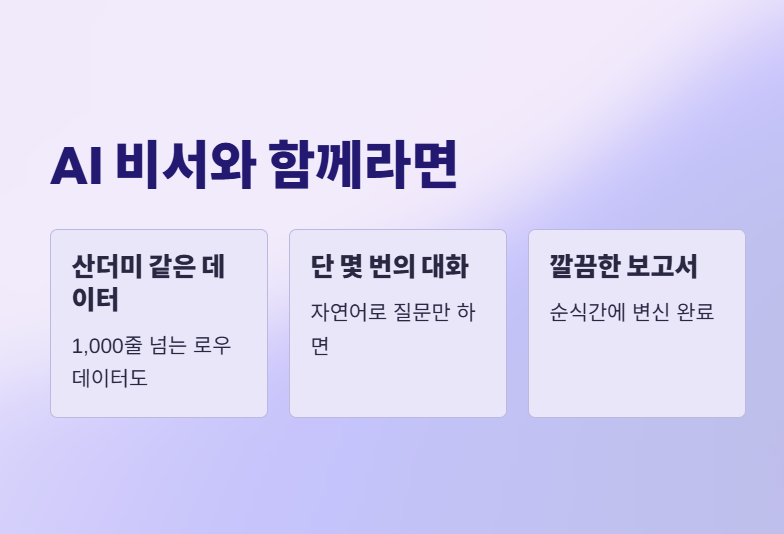 복잡한 수식과 씨름하던 시대는 끝났습니다. "아직도 VLOOKUP 때문에 머리 싸매고 계신가요? 2026년 직장인은 함수 대신 '말'로 엑셀을 부립니다. 칼퇴 비결, 궁금하지 않으세요?"