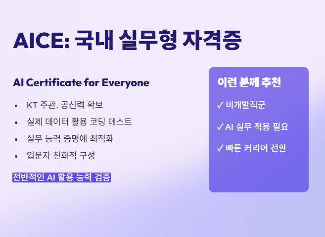 ① AICE (AI Certificate for Everyone) - "국내 실무형 자격증"