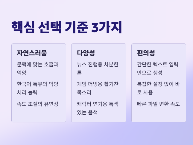 다양한 AI 목소리 어플 중에서 나에게 맞는 것을 찾으려면 몇 가지 핵심 요소를 체크해야 해요. 가장 중요한 것은 '자연스러움'입니다. 문맥에 맞는 호흡, 억양, 속도 조절이 자유로운지 확인해야 해요. 특히 한국어는 억양이 중요해서 자연스러운 AI 모델을 찾는 게 핵심이죠.