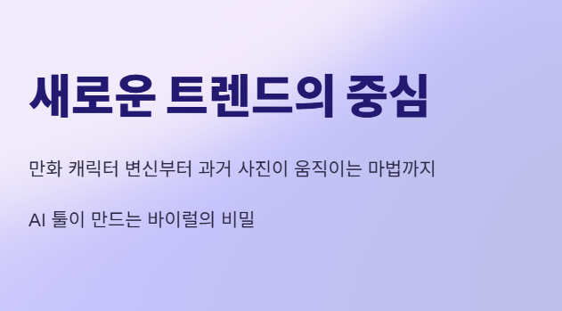 최근 숏폼 트렌드의 핵심은 '정지된 사진을 움직이는 영상으로 바꾸는 것'입니다. 이는 단순히 사진에 효과를 주는 것이 아니라, AI가 사진 속 인물의 표정, 배경의 움직임을 예측하여 만들어냅니다.