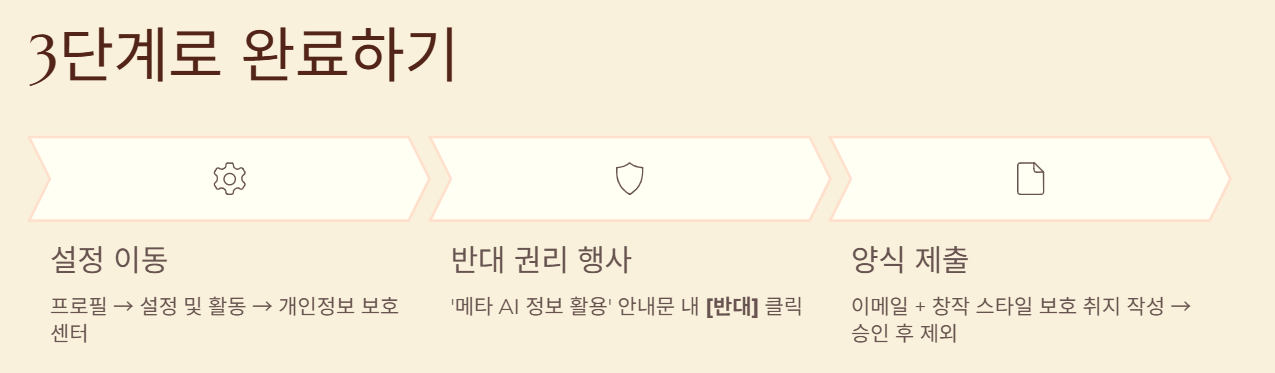 - 반대 권리 행사: '메타 AI의 정보 활용' 관련 안내문 내 [반대(Object)] 링크를 클릭합니다.